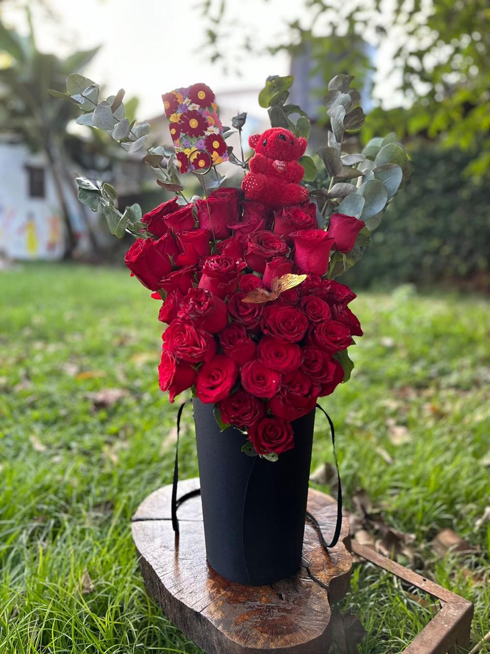 Just For You 40 Stems Vase – (Comes with Card and Teddy Bear)